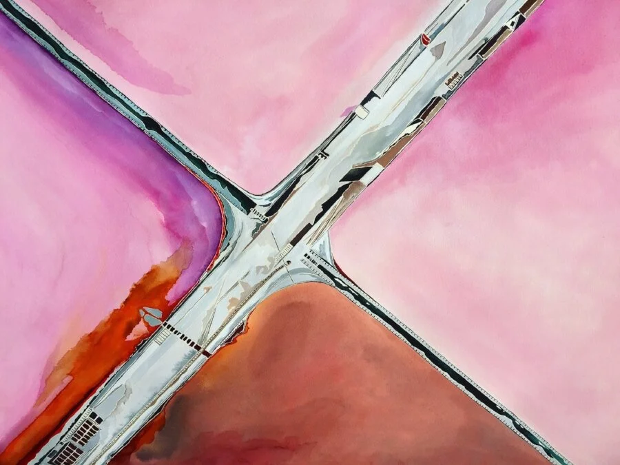 "Crosscut" is the first of the four black and white artworks. These artworks are inspired by the traditional photography process of placing a black and white photograph into solution to develop. By taking away the colour from these artworks the emphasis lies on the movement of the Ouroboros "snake" which is the winding path - a motif present in each artwork from the Ouroboros series. Each of the black and white artworks presents a different feeling of each stage of the Ouroboros cycle depending on how you look at and interpret it, drawing from personal experiences. Removing the colour also allows the viewer to appreciate the finer detail in these four artworks.